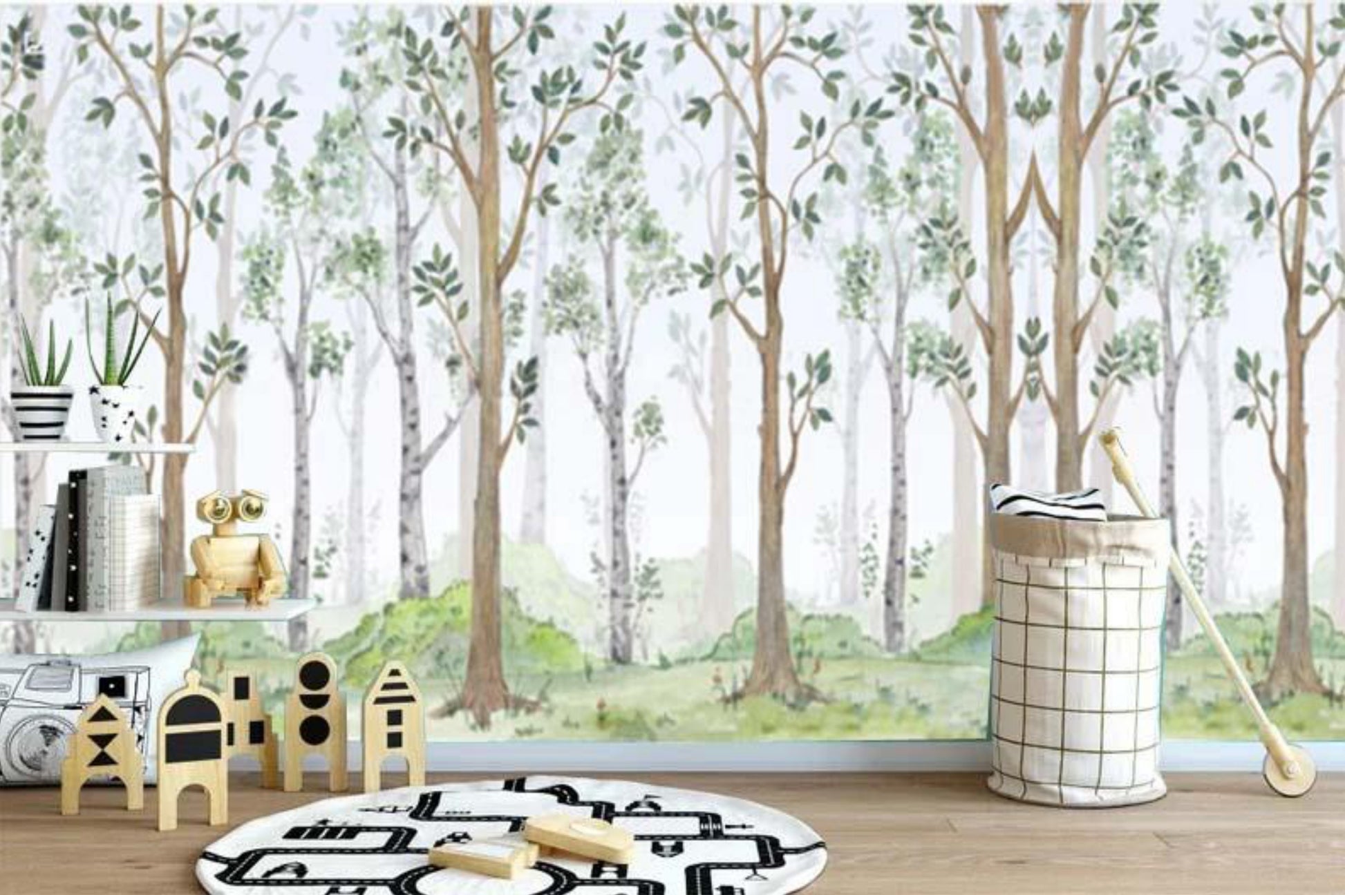 A magical portrayal of towering trees and playful bushes in an enchanted forest setting. Step into the enchantment to transform the room into a serene sanctuary, where the allure of the outdoors sparks curiosity and dreams. Turn walls into a magical haven, inviting endless adventures with every glance. 🌳🌿